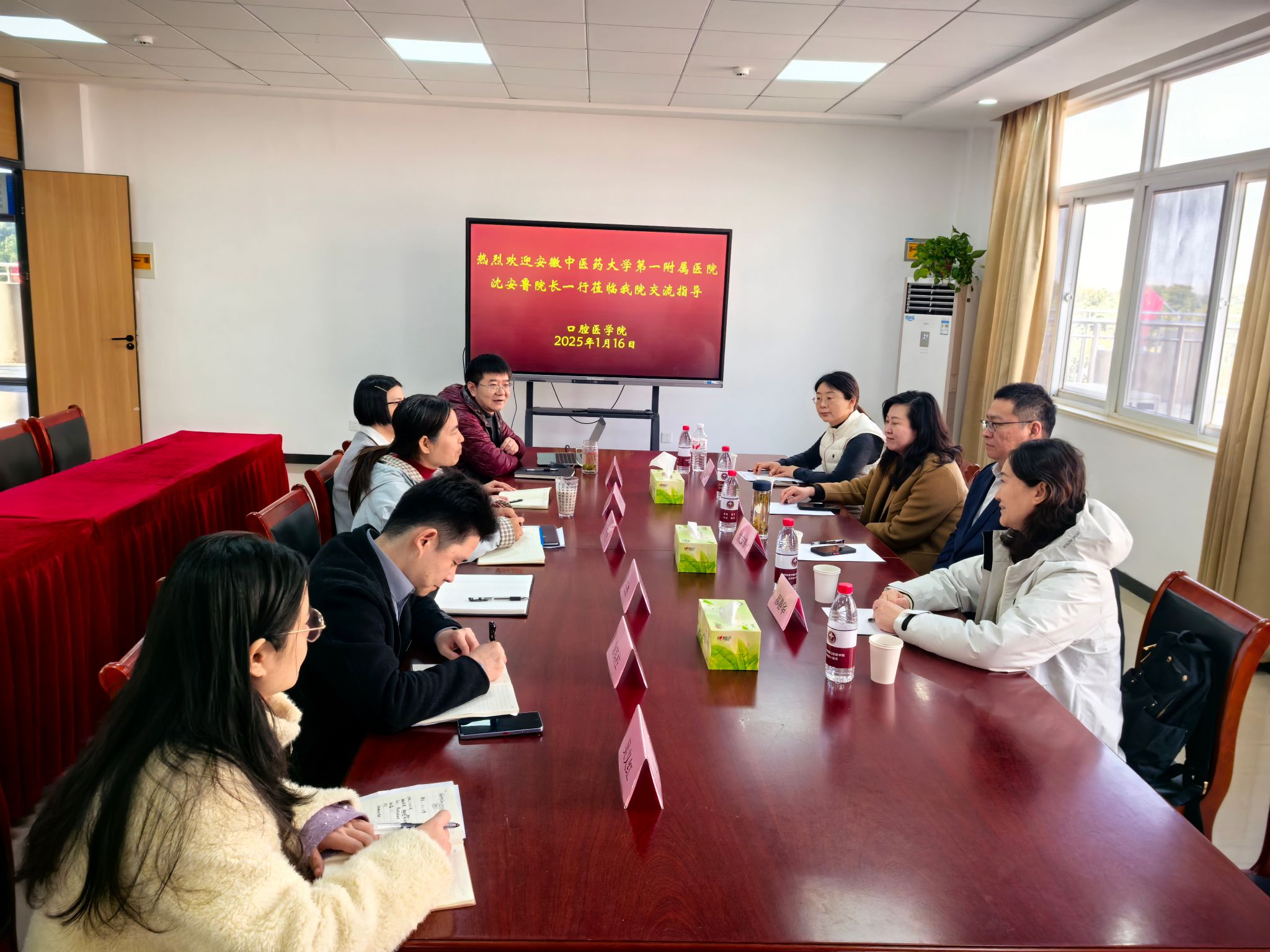 近日,安徽中医药大学第一附属医院党委委员、副院长沈安鲁一行访问皖南医学院口腔医学院。