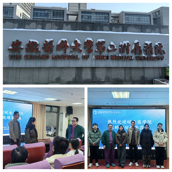 1月21日,麻醉学院党委副书记张卉带队前往安徽医科大学第二附属医院开展实习学生走访慰问活动。安徽医科大学第二附属医院麻醉科主任李锐热情接待,双方围绕临床教学、人才培养、实习生培养质量提升、考研就业支持、规培政策衔接等进行交流。