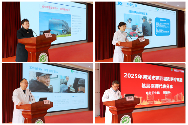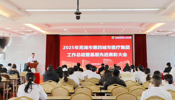 章如平代表芜湖市卫健委向大会召开表示祝贺。他充分肯定了第四城市医疗集团过去一年在会诊转诊、慢病管理等方面取得的成绩,并提出三点意见:一是坚持党建引领。各成员单位要牢固树立“一盘棋”思想,始终把党的政治建设摆在首位,推动党建与业务深度融合。二是坚持协同发展。持续推动人才、技术、管理同步下沉,建立责任共担、利益共享、发展共赢的命运共同体。三是坚持人民至上。锚定“患者满意”核心目标,打造温暖优质的服务品牌,不断提升患者就医获得感和幸福感。