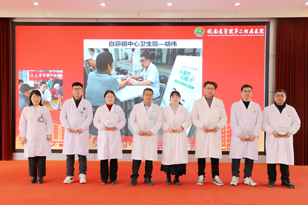 在分享交流环节,镜湖新城社区卫生服务中心院长王业文,第二附属医院慢病管理中心护士长文学芳、心血管内科副主任医师汪文兵,方村卫生院全科医师罗继华作为优秀代表发言,他们结合自身工作实际,分享了在基层一线工作中的经验和感悟,表达了继续为医疗卫生事业不懈奋斗的决心。