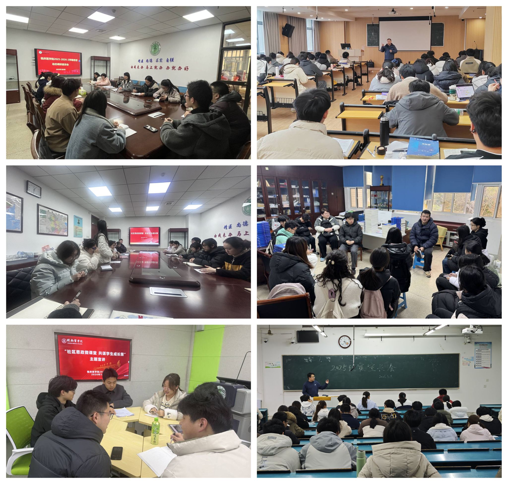 为精准掌握新学期学生思想动态,了解学生在学习、生活、发展等方面的需求与困惑,全面提升育人服务质量,临床医学院以社区思政微课堂、主题班会、走访宿舍、深入课堂等形式全面了解学生思想动态情况。