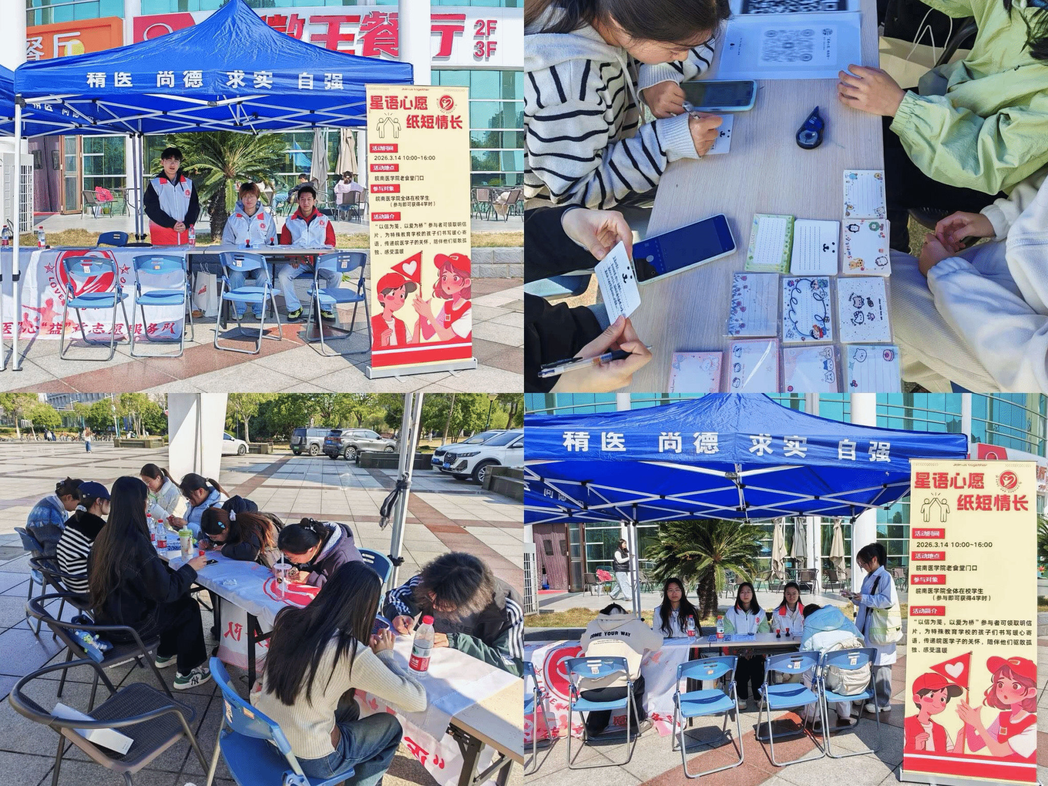 3月14日,志愿服务队在校内开展“爱心明信片祝福征集活动”,搭建大学生与特殊儿童之间的温情桥梁。志愿者们精心布置场地,吸引众多同学驻足参与。大家写下鼓励话语、绘制可爱图案,将美好祝愿凝于笔端。明信片将送往特殊教育学校,让孩子们感受到来自校园的温暖与关爱。