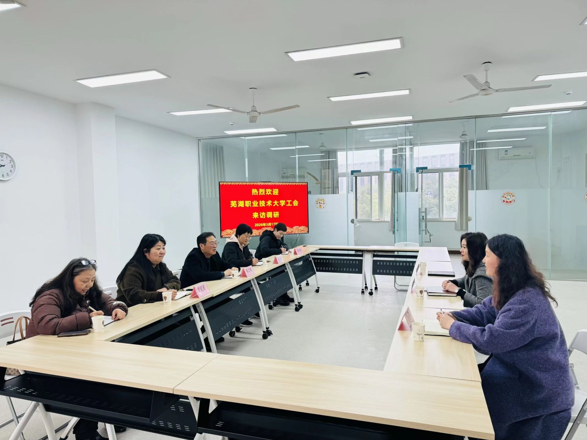3月17日上午,芜湖职业技术大学工会主席陈志飚一行来访,调研交流工会工作。校工会全体人员参加调研。