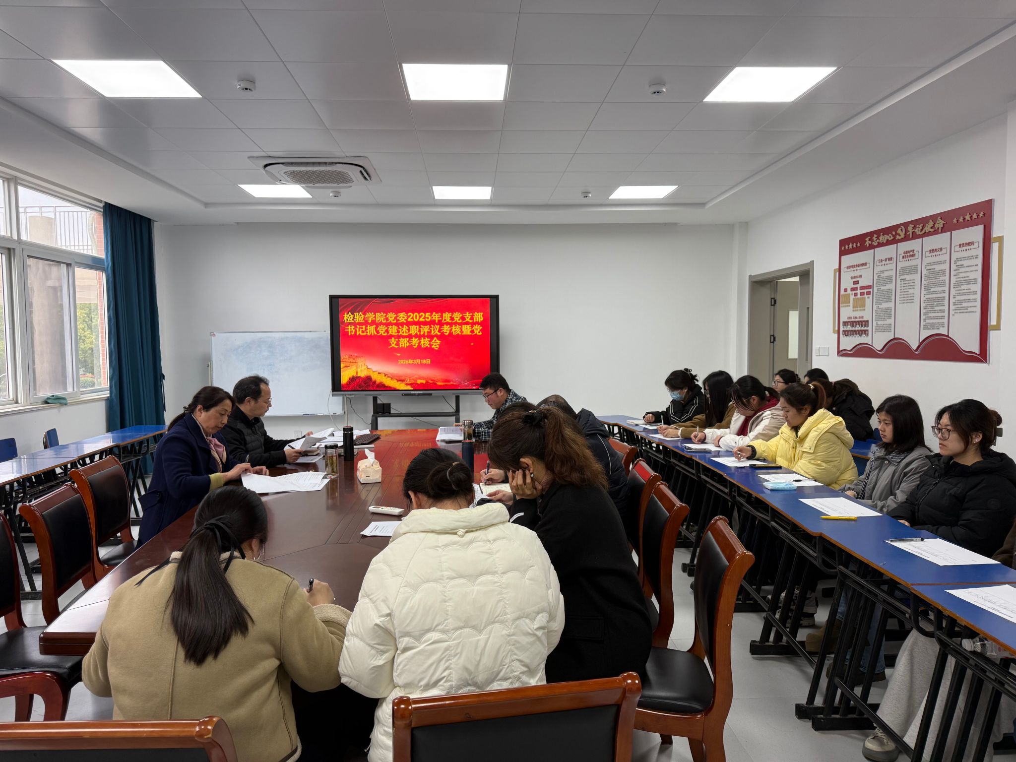 为推动学院党建工作高质量发展,引导党支部实现“七个有力”建设目标,3月18日下午,检验学院党委在学院会议室召开了2025年度党支部书记抓基层党建述职评议考核暨党支部考核会,学院党委班子成员、各党支部书记及相关人员参加会议。会议由学院党委书记、副院长刘影主持。