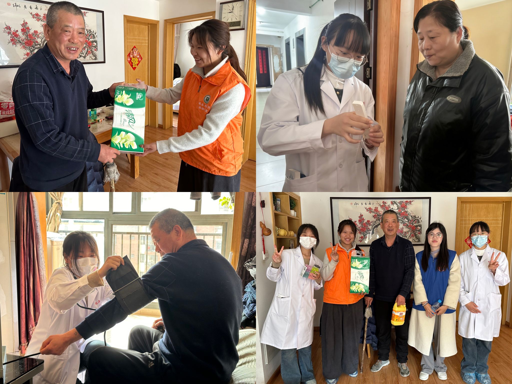 入户服务环节,志愿者走进居民家中,实地开展家庭用水简易检测,现场指导居民观察水质、辨别异常情况,并针对性提出用水安全建议。同时,与老人亲切交谈,了解生活状况与实际需求,送上慰问品与关怀。上门服务既精准解决居民用水疑惑,也以实际行动传递温暖,彰显青年学子的责任与担当。