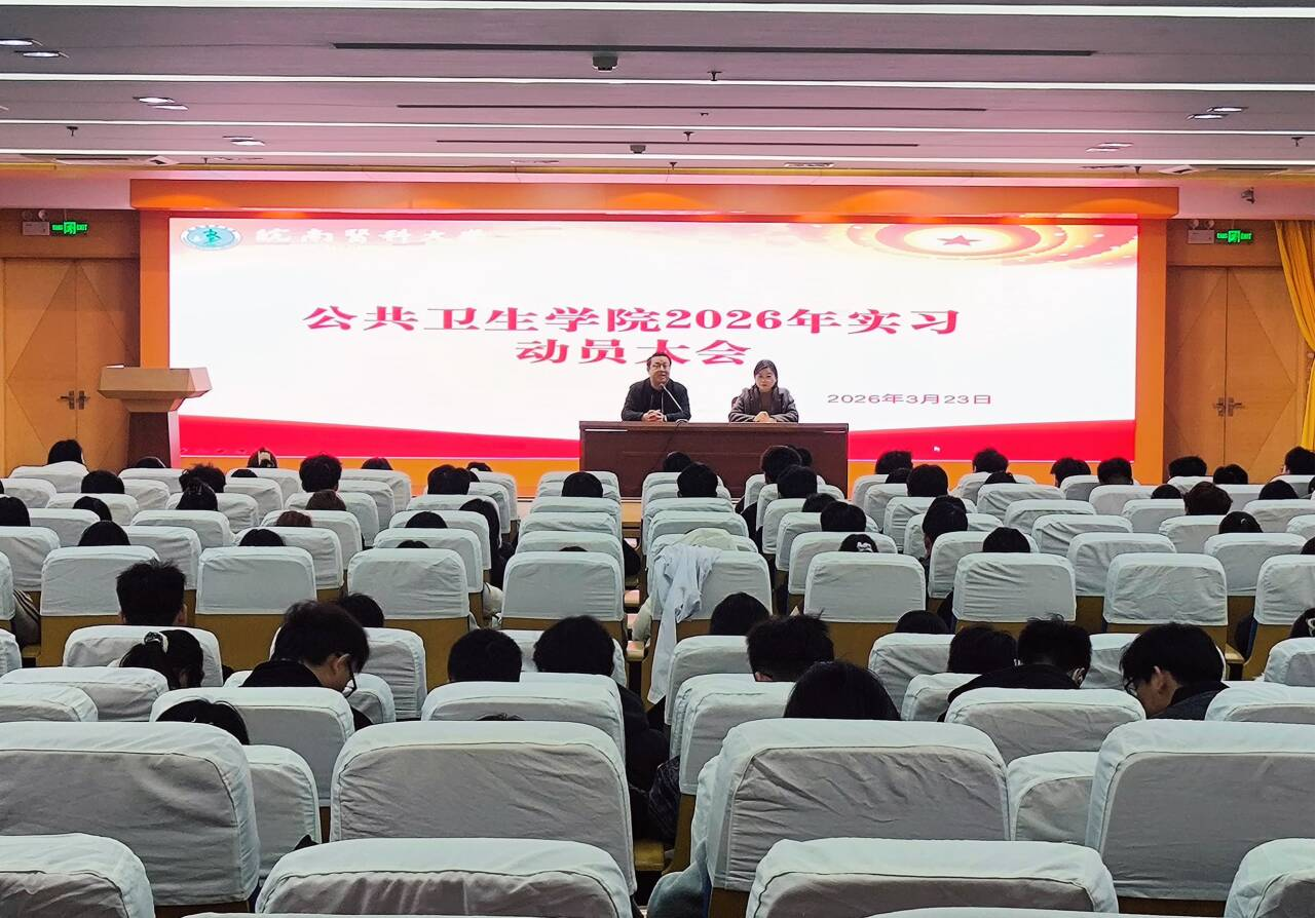 为进一步加强毕业实习规范化管理,周密部署实习各项工作,切实保障实习教学成效,3月23日,公共卫生学院在图书馆三楼报告厅召开2026年实习动员大会。公共卫生学院院长、党委副书记金岳龙,党委副书记、纪委书记贾光蕾,辅导员李超君、王娇娇及全体实习年级学生参加会议,会议由王娇娇主持。