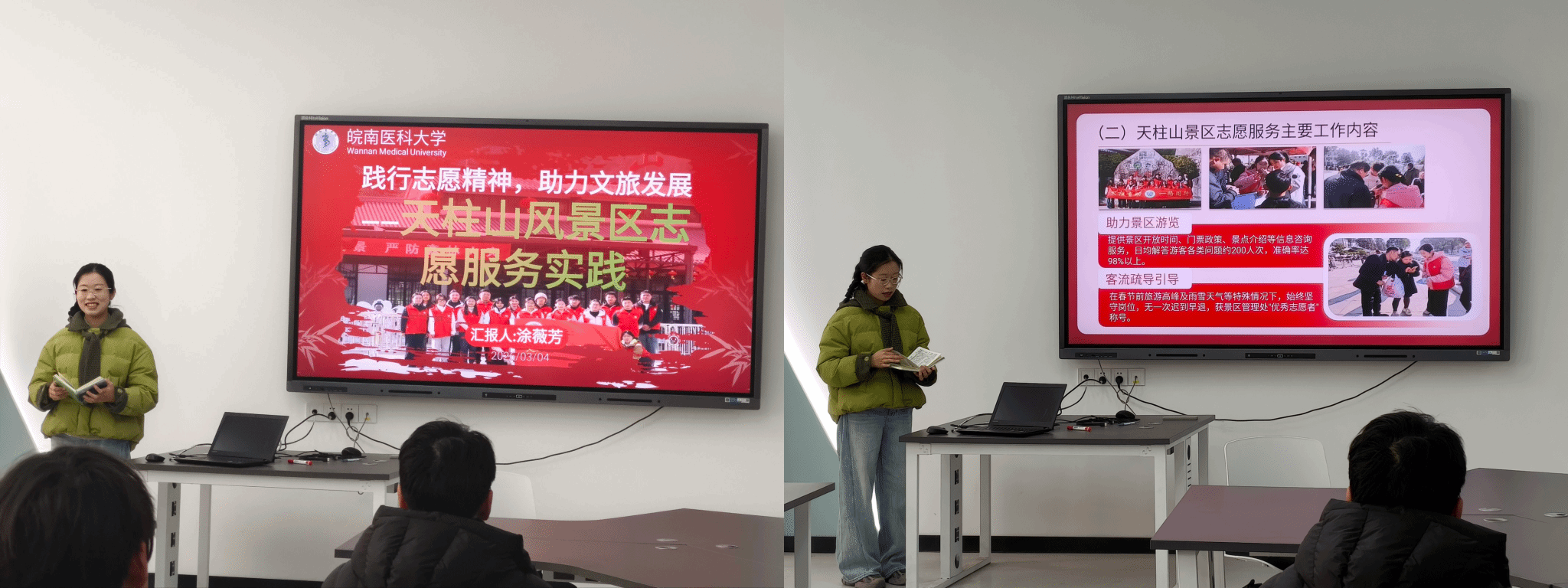 3月4日,学院举办志愿服务分享会,优秀志愿者代表涂薇芳结合自身服务经历,分享了志愿服务中的成长感悟与暖心故事,深刻诠释了“奉献、友爱、互助、进步”的志愿精神。其亲身经历引发在场同学共鸣,有效激发了全院青年参与志愿服务的热情。