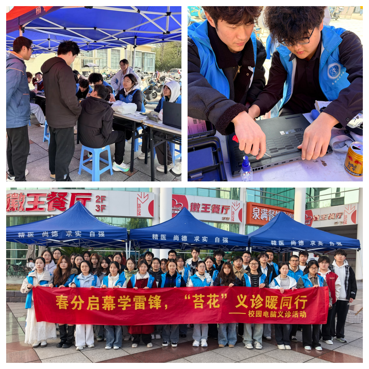3月21日,学院“苔花”党员志愿服务队在北区新、老食堂开展“电脑义诊”公益活动。活动现场,志愿者们带着专业工具为全校同学的电脑进行全面“体检”,解决卡顿、清灰、软件故障、病毒查杀、硬件检测等问题,确保每位同学的需求都能妥善解决。此次活动将专业知识转化为实践服务,展现了医信学子的责任担当。