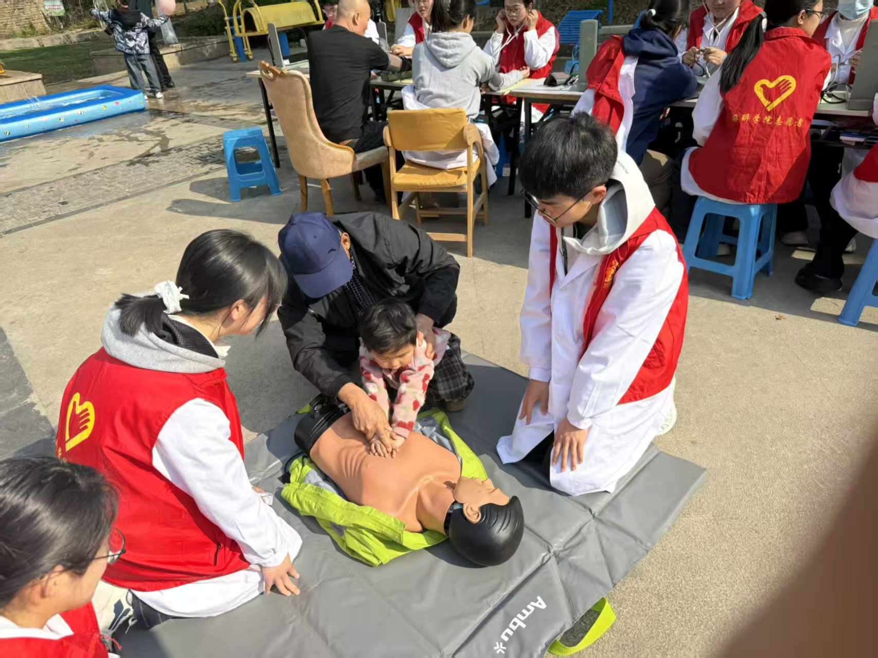 为深入推进“学雷锋志愿服务月”活动,大力弘扬奉献、友爱、互助、进步的志愿精神,切实把便民健康服务送到群众家门口,普及全民健康知识与应急急救技能,3月29日,麻醉学院“一站式”学生社区联合“安娜萨沙”急救分队志愿者走进弋江区橡树园社区,开展公益健康服务与急救科普活动,以暖心志愿服务传递民生温度,赢得社区居民一致好评。