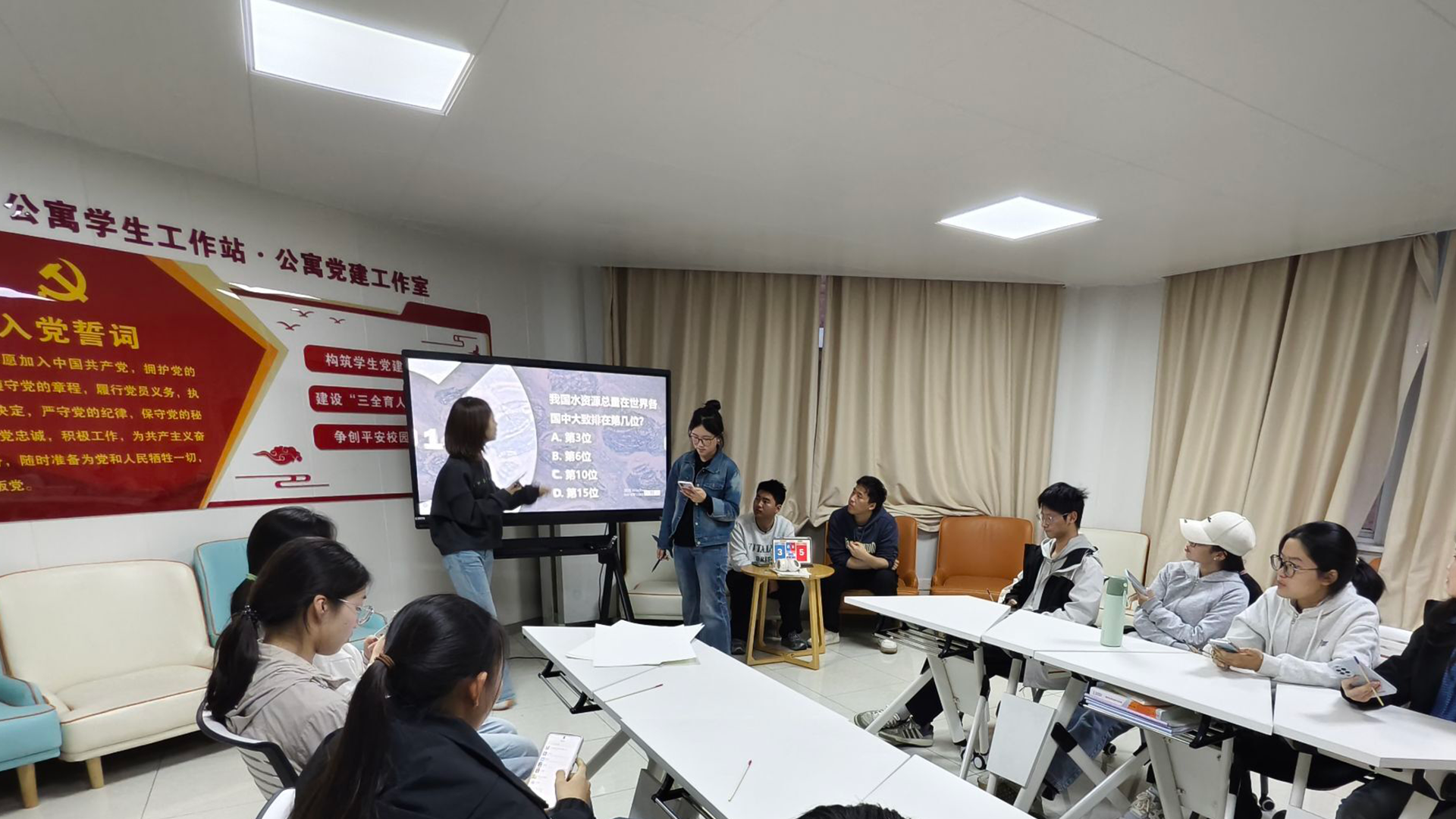在一站式学生社区,水知识趣味抢答赛如期开展。竞赛内容聚焦水资源现状、日常节水技巧、水环境法律法规等实用知识,同学们踊跃参与、积极抢答,现场气氛热烈。以赛促学、以答促记的形式,帮助大家系统学习科学用水知识,进一步强化珍惜水资源、保护水环境的责任意识,让节水知识入脑入心。