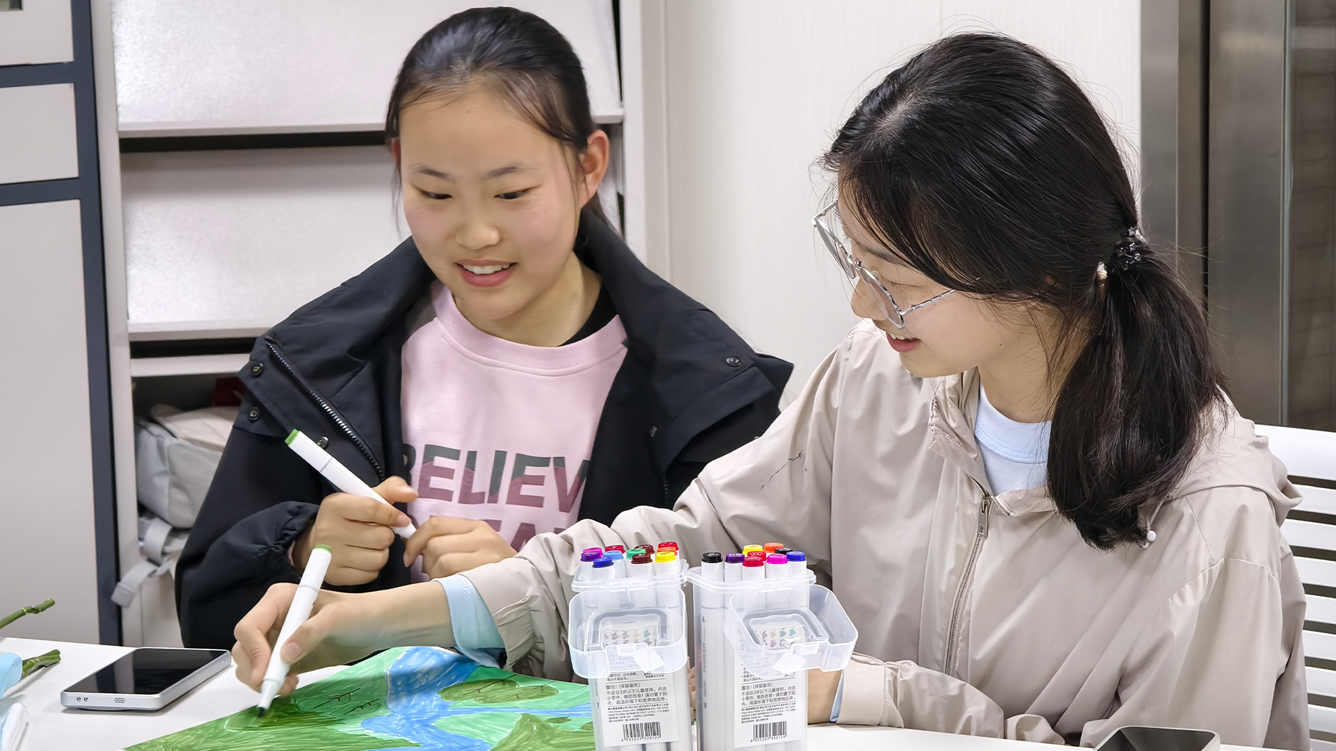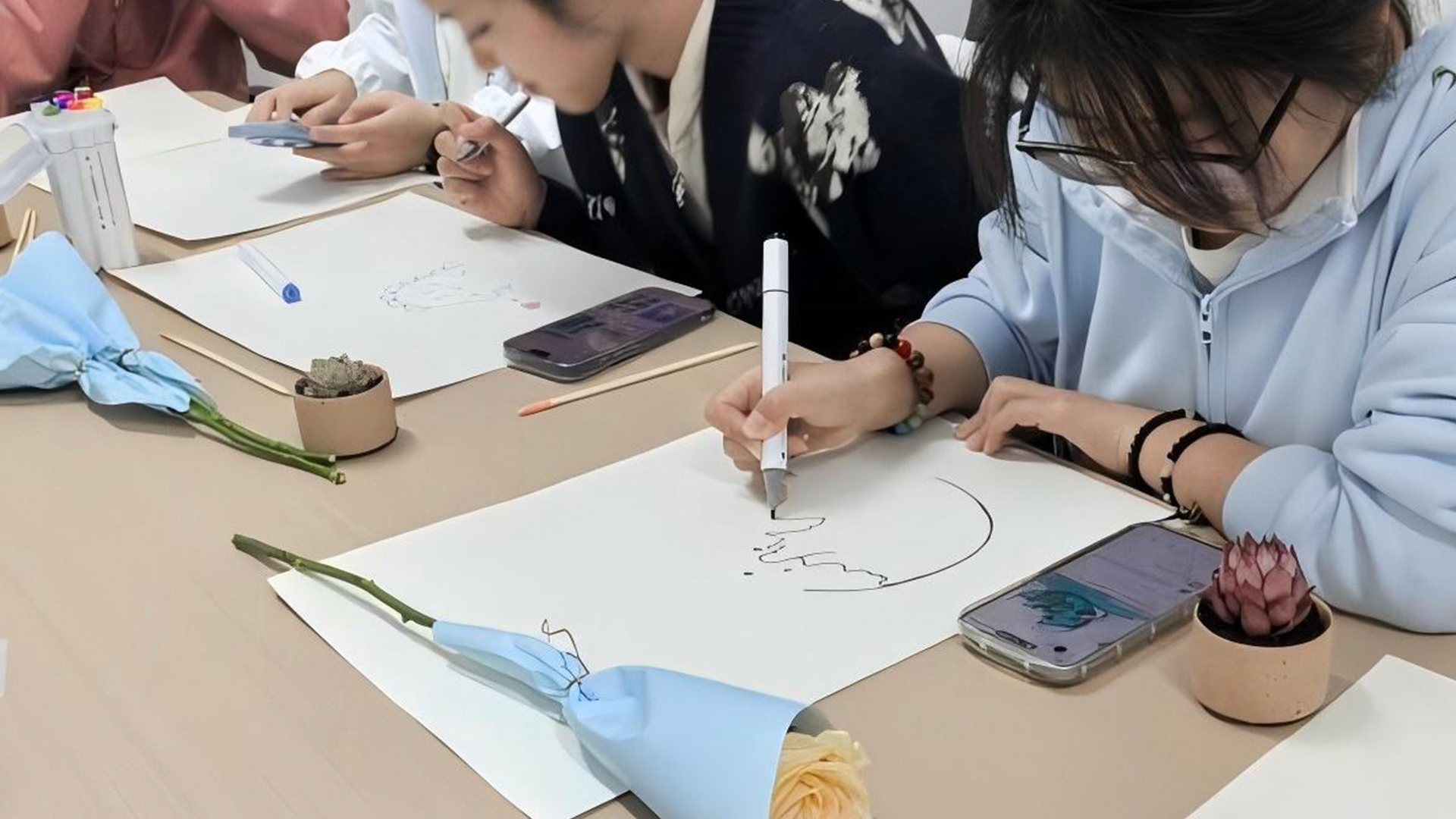在食堂门口举办的节水主题明信片绘画活动中,同学们以笔墨为载体、以节水为内核,围绕江河生态、节水标识、绿色校园等内容精心创作,用灵动笔触描绘护水愿景,以缤纷色彩传递环保理念,让节水宣传以艺术形式浸润校园、深入人心。