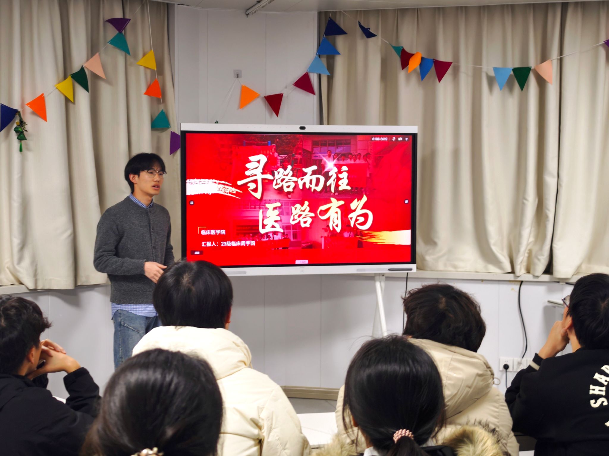 全校578个基层团支部紧扣“雷锋精神薪火传”主题,结合“三会两制一课”扎实开展主题团日活动,通过“集中学、身边讲、用心谈”的组合拳方式,组织团员青年集中研读习近平总书记关于弘扬雷锋精神的重要论述,观看红色电影,共读雷锋故事,推动雷锋精神从“浅层知晓”走向“入脑入心”;举行国旗下的思政课,邀请朋辈榜样走进“一站式”学生社区,以身边人讲述身边奉献故事的形式,推动学习雷锋从“遥望感动”走向“见贤思齐”;组织团员青年畅谈志愿体悟、共话成长收获,在碰撞交流中凝聚行动自觉,推动志愿精神从“内化于心”走向“入心见行”。