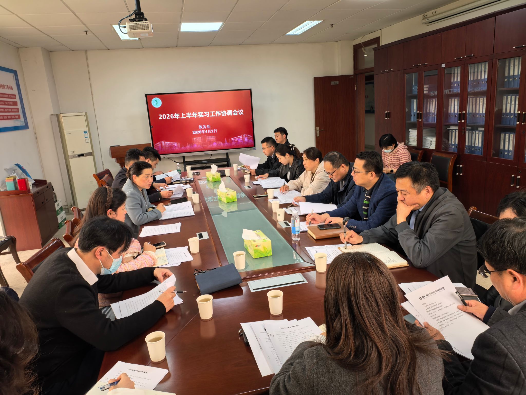 会上,教务处首先介绍了2026年上半年实习交接工作具体安排,并组织与会人员深入学习教育部等六部门联合印发的《关于加强普通本科高校大学生实习工作的意见》文件精神。会议要求各二级学院要深刻领会文件要求,聚焦规范管理、提升质量、创新模式、强化安全、加强保障五大核心任务,切实履行实习工作主体责任,将各项要求贯穿实习全流程管理,全力筑牢实习安全屏障,提升实习育人质量。