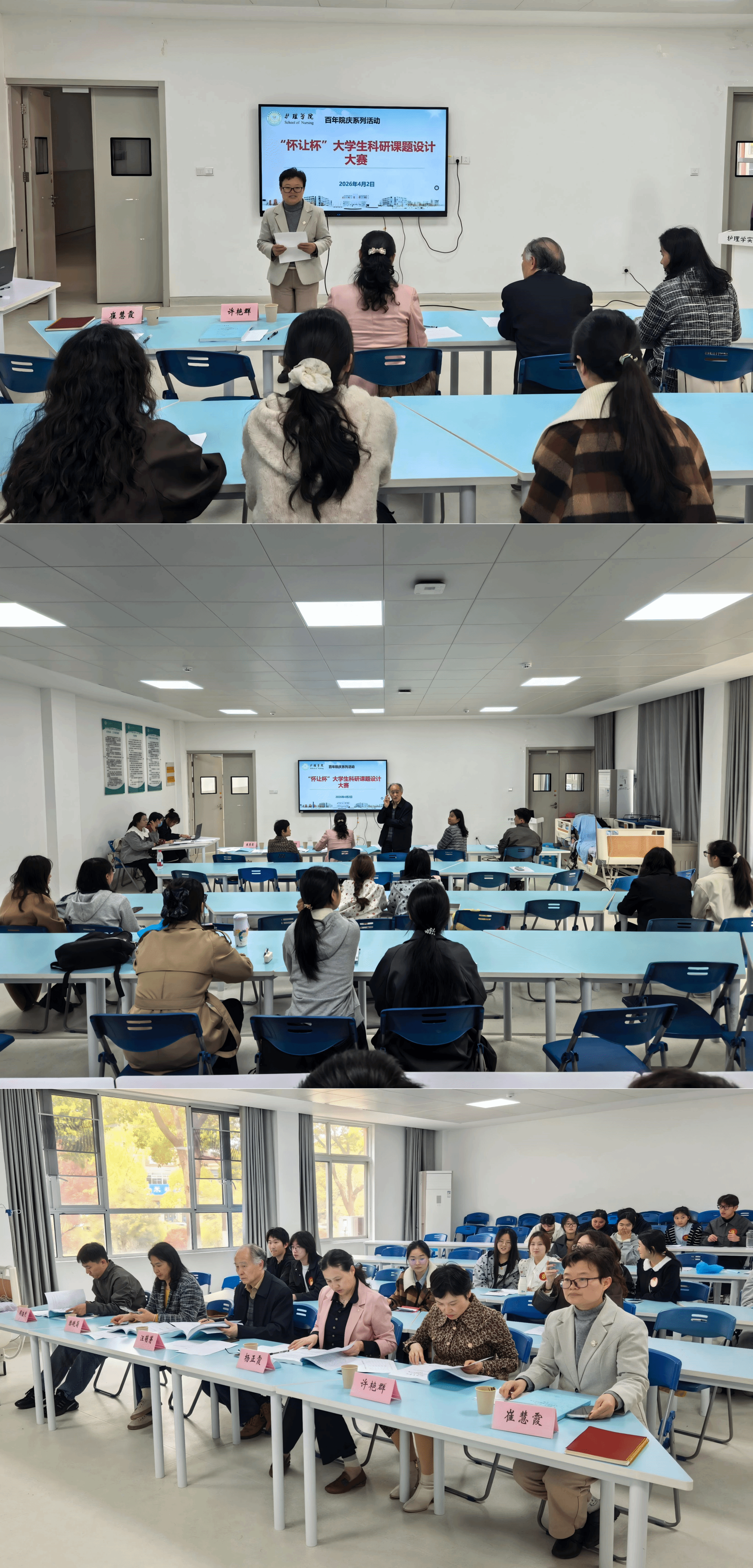 为传承“怀让精神”,厚植科研创新思维,培育具有专业素养和创新能力的复合型护理人才,4月2日,护理学院在滨江校区南区1118教室举办“护理办学百年”系列活动之2026年“怀让杯”大学生科研课题设计大赛。本次活动邀请校教育教学督导组组长汪萌芽教授、康复护理学教研室主任杨正霞、外科护理学教研室主任滕晓菊、一附院护理硕士生导师许艳群、2024级年级主任周浩然等担任评委。大赛由护理学院副院长崔慧霞主持。