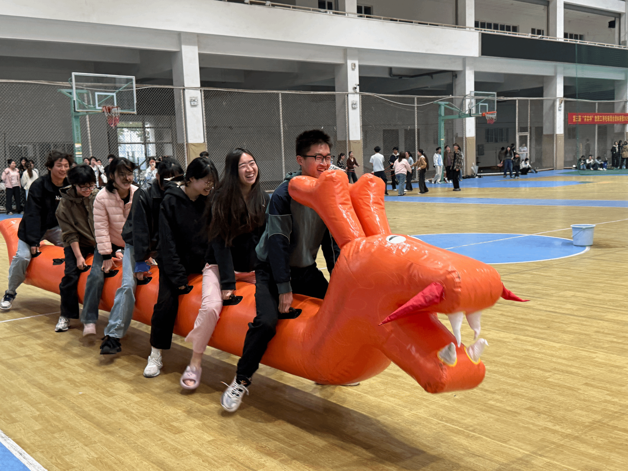 本届体育运动节沿袭往年的“校、院两级学生会协同合作,学生社团积极参与”的活动形式,共有11所学院、11个学生社团申报承办28个趣味项目。4月11日、12日,体育运动节热情开赛,医学影像学院团委倾力打造“同心协力”项目,引导同学们凝心聚力、携手共进,锤炼团队协作能力。公共卫生学院团委带来“旱地龙舟”项目,用整齐的步伐和昂扬的斗志,诠释着团结一心、拼搏向前的精神内核。跆拳道协会开展的“极速争霸”,重点考验反应速度和竞技比拼;瑜伽协会组织的“你比我猜”,动手又动脑考验同学默契配合;健美操协会带来的“毽步如飞”,融合踢毽与健身韵律,趣味又健身;乒乓球协会策划的“乒乓大转盘”,互动体验轻松有趣。活动现场气氛热烈、欢声笑语不断,同学们在轻松愉悦的氛围中锻炼身体,绽放青春,增进友谊,培养团队合作精神,养成科学健康的生活习惯。