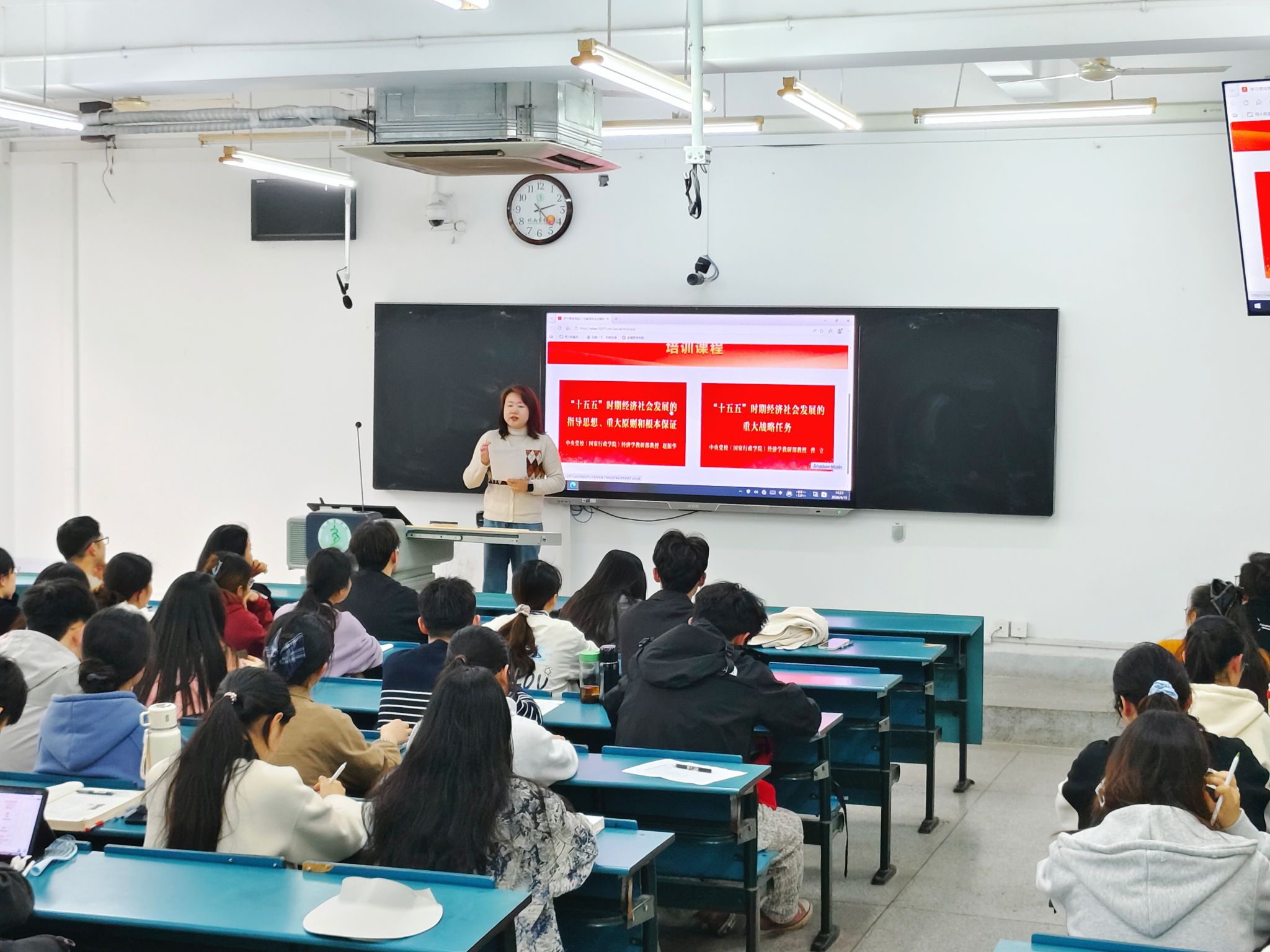 赵振华以“十五五”时期经济社会发展的指导思想、重大原则和根本保证为题,从三个方面对“十五五”时期经济社会发展进行系统解读,阐明制定“十五五”规划的重大意义和《建议》稿基本结构,指出“十五五”时期是基本实现社会主义现代化的关键时期,深入解读“十五五”时期经济社会发展的指导方针与主要目标,为学习领会规划精神提供了重要指导。培训内容主题鲜明、内涵丰富、立意高远,对师生党员准确全面领会党的二十届四中全会精神和“十五五”规划具有十分重要的指导意义。