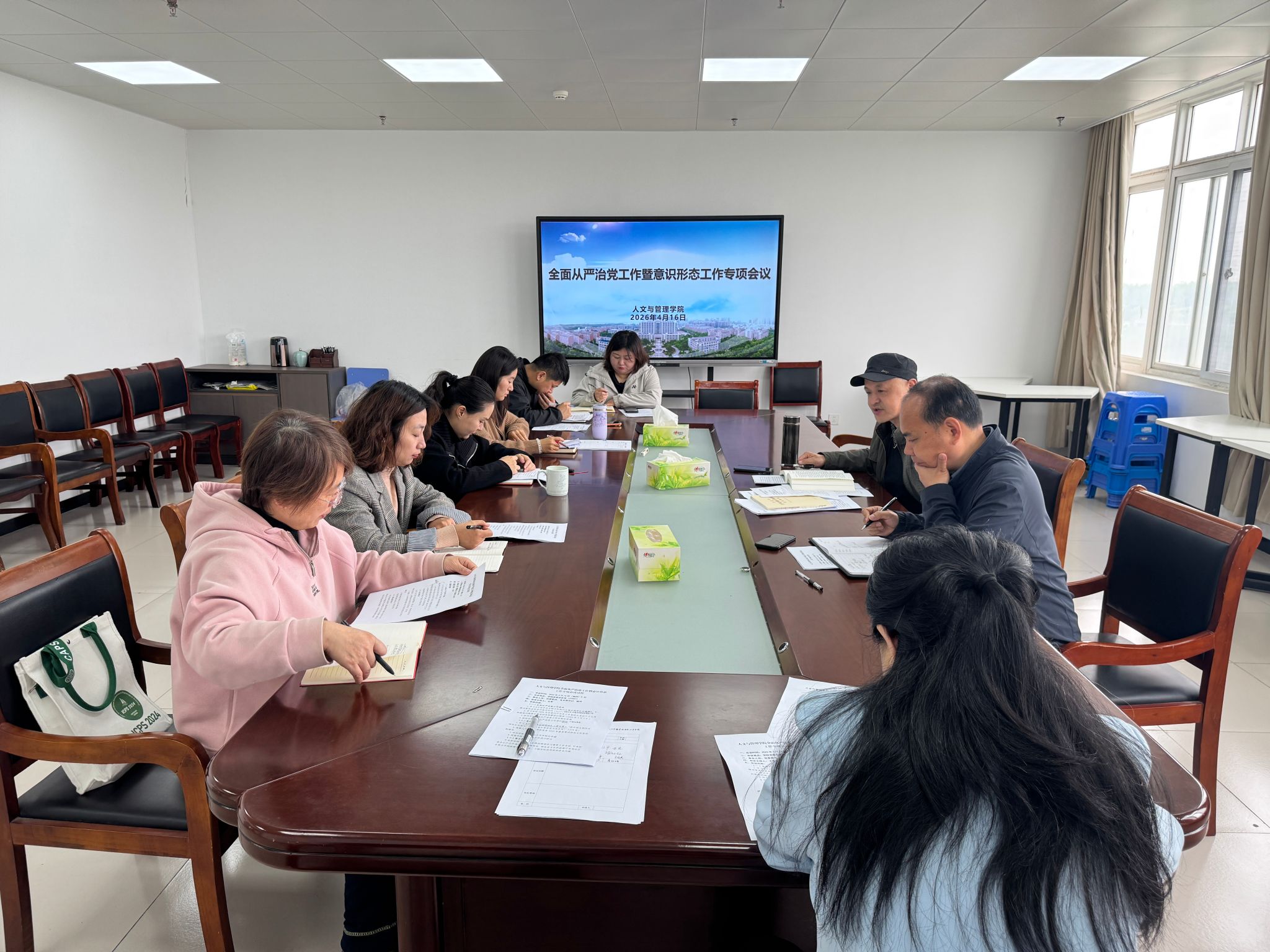 4月15日上午,人文与管理学院召开全面从严治党工作暨意识形态工作专项会议。学院党委书记王军主持会议,党委委员、各党支部书记及秘书参会。