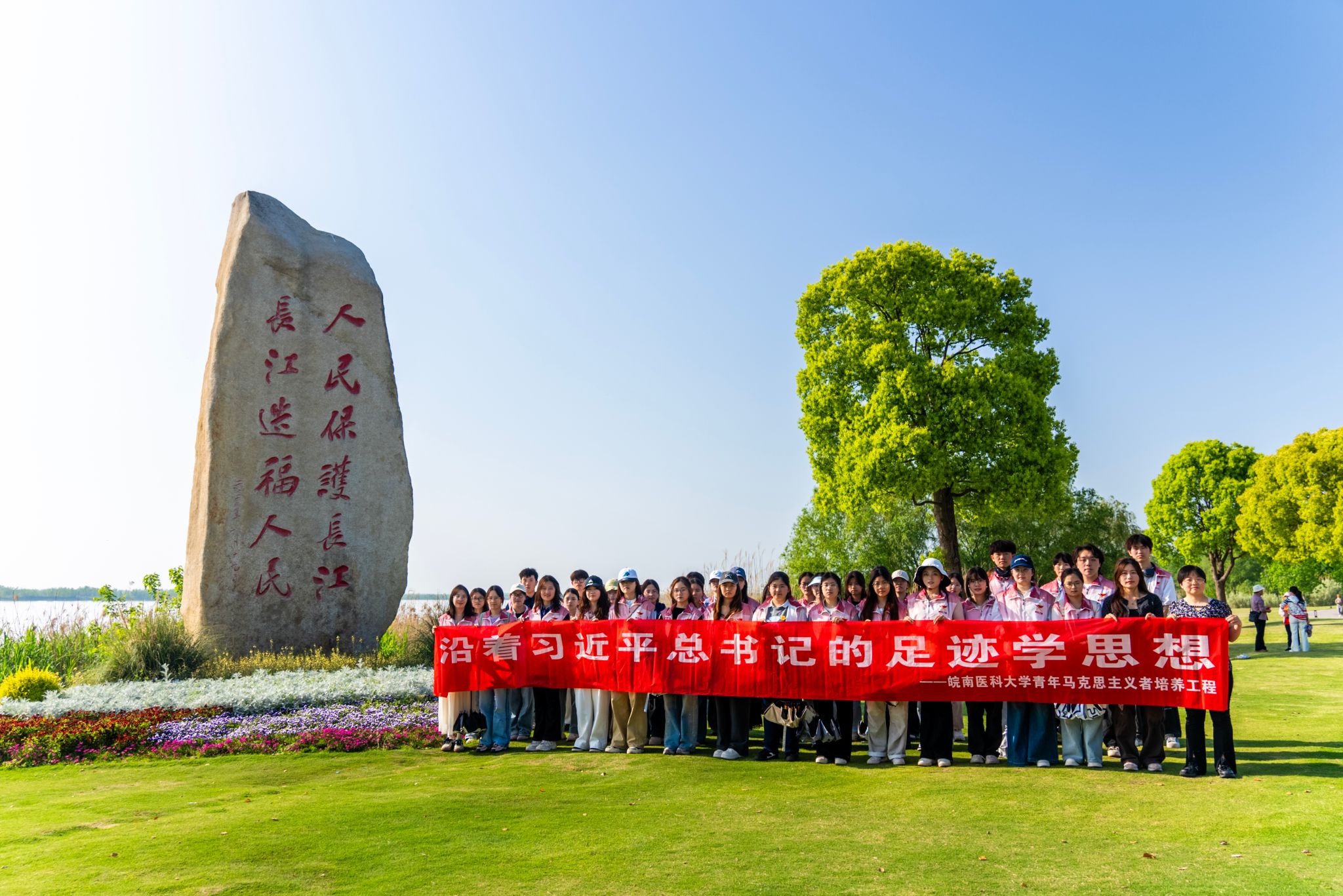 为深入学习贯彻习近平新时代中国特色社会主义思想,引导青马学员在实景课堂中感悟思想伟力、践行青春使命,4月19日,我校第十七期青年马克思主义者培养工程学员前往马鞍山市薛家洼生态园,沿着习近平总书记的足迹开展主题研学活动。马克思主义学院习近平新时代中国特色社会主义思想概论教研室教师、校青马班班主任李飞飞,实践导师高健参加活动。
