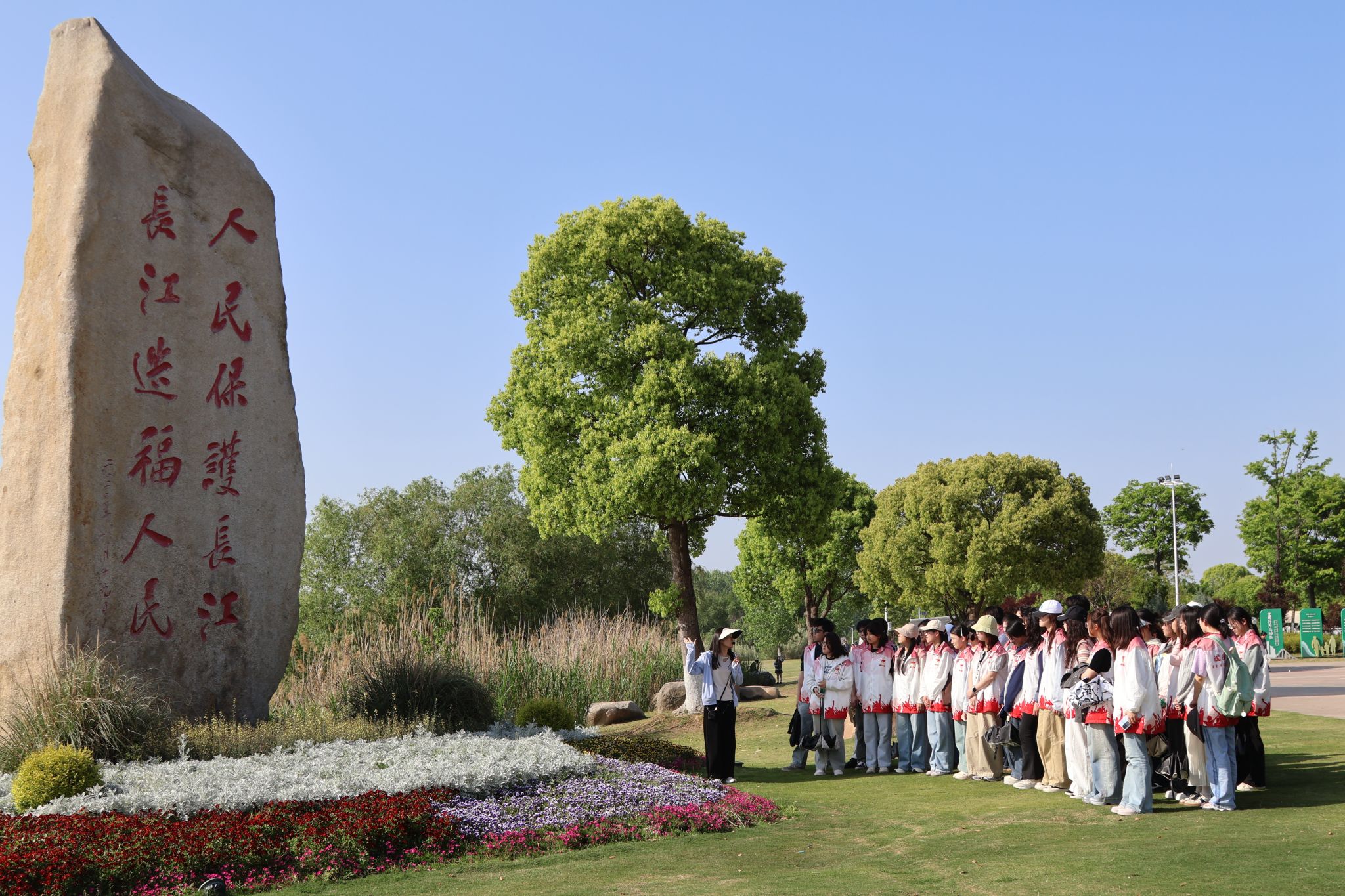 随后,学员们来到江畔镌刻着“人民保护长江,长江造福人民”字样的巨型石碑前,聆听讲解员介绍石碑的由来及习近平总书记“守护好一江碧水”的殷殷嘱托。一路走、一路看、一路听,学员们深刻感受到习近平生态文明思想指引薛家洼蝶变的思想伟力,对“绿水青山就是金山银山”理念有了更加真切的体悟。
