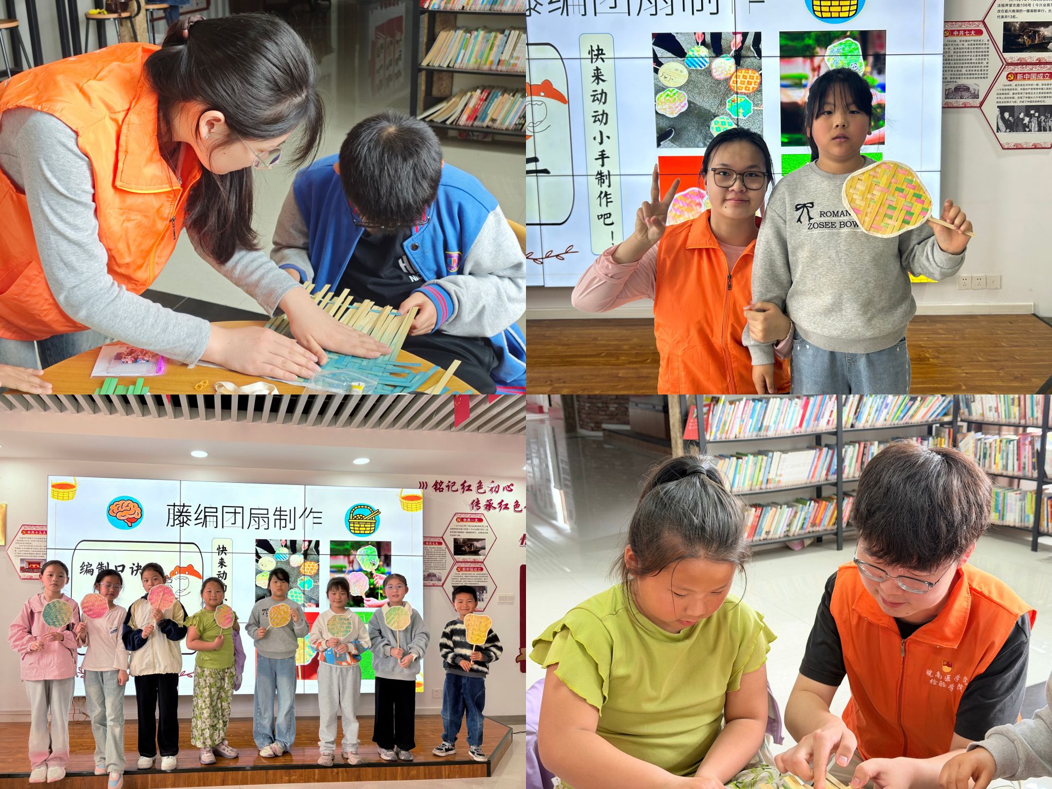 藤编团扇手工体验环节,志愿者们一对一悉心指导、手把手示范教学,耐心为孩子们讲解穿、绕、编、压等编织技巧,及时协助解决制作过程中遇到的各类问题,引导大家在实践中感悟藤编工艺所蕴含的匠心内涵。许多孩子从最初的手足无措、手忙脚乱,慢慢熟悉操作要领,最终顺利完成了属于自己的藤编团扇作品,在动手过程中收获了乐趣与成就感。
