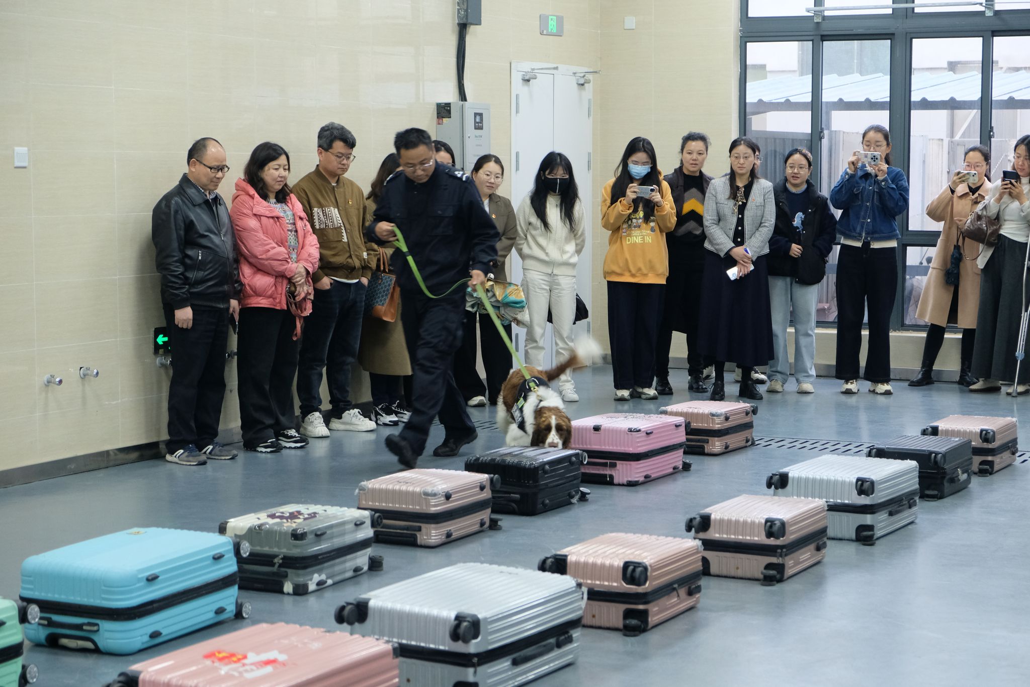 随后,全体教师前往芜湖市公安局警犬基地进行参观。在基地训导员的讲解下,大家观摩了警犬的日常训练、搜爆、追踪等实战科目演示。警犬敏锐的嗅觉、精准的执行力以及与训导员之间默契的配合,赢得了阵阵掌声。这一环节不仅让教师们近距离领略了警犬技术在反恐处突、侦查破案中的独特作用,也进一步深化了对公安工作专业化、实战化建设的理解。