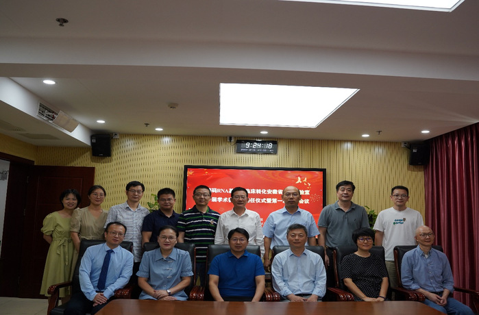 朱再满宣读了第一届学术委员会委员聘任名单。朱向明向学术委员会委员颁发聘书。北京大学教授、博士生导师、国家杰出青年科学基金获得者崔庆华教授聘任为学术委员会主任委员,哈尔滨医科大学潘振伟教授、中国科技大学汪香婷教授、复旦大学花玮教授、安徽师范大学朱国萍教授、皖南医学院吴志浩教授和吕坤教授聘任为学术委员会委员。