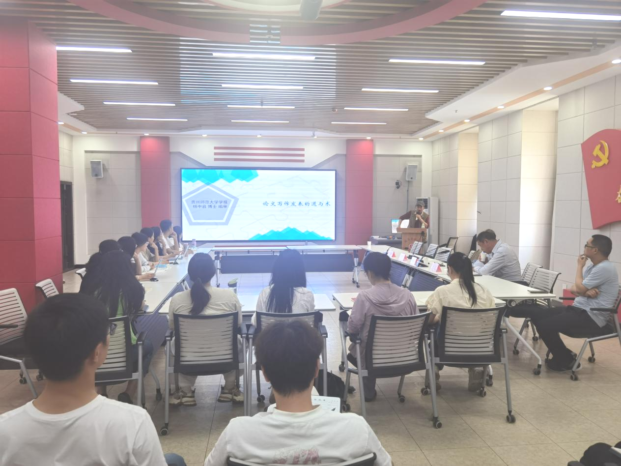 为提升师生学术论文写作与发表能力,近日,马克思主义学院特邀《贵州师范大学学报》主编杨中启教授来院开展专题学术讲座。苏州大学马克思主义学院方文教授,我校马克思主义学院院长陶庭马、副院长张婧,教师代表及全体研究生参加。