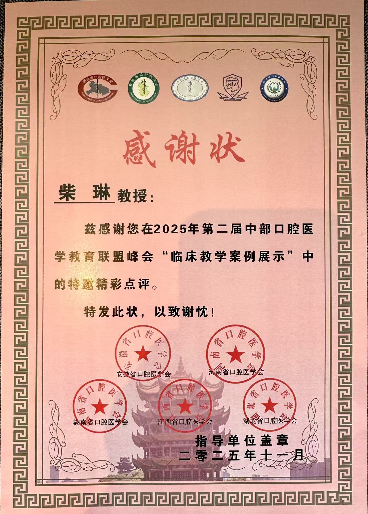 11月12日,第二届“中部口腔医学教育联盟”峰会在湖北武汉举行。口腔医学院党委书记、副院长柴琳教授率师生参加会议。