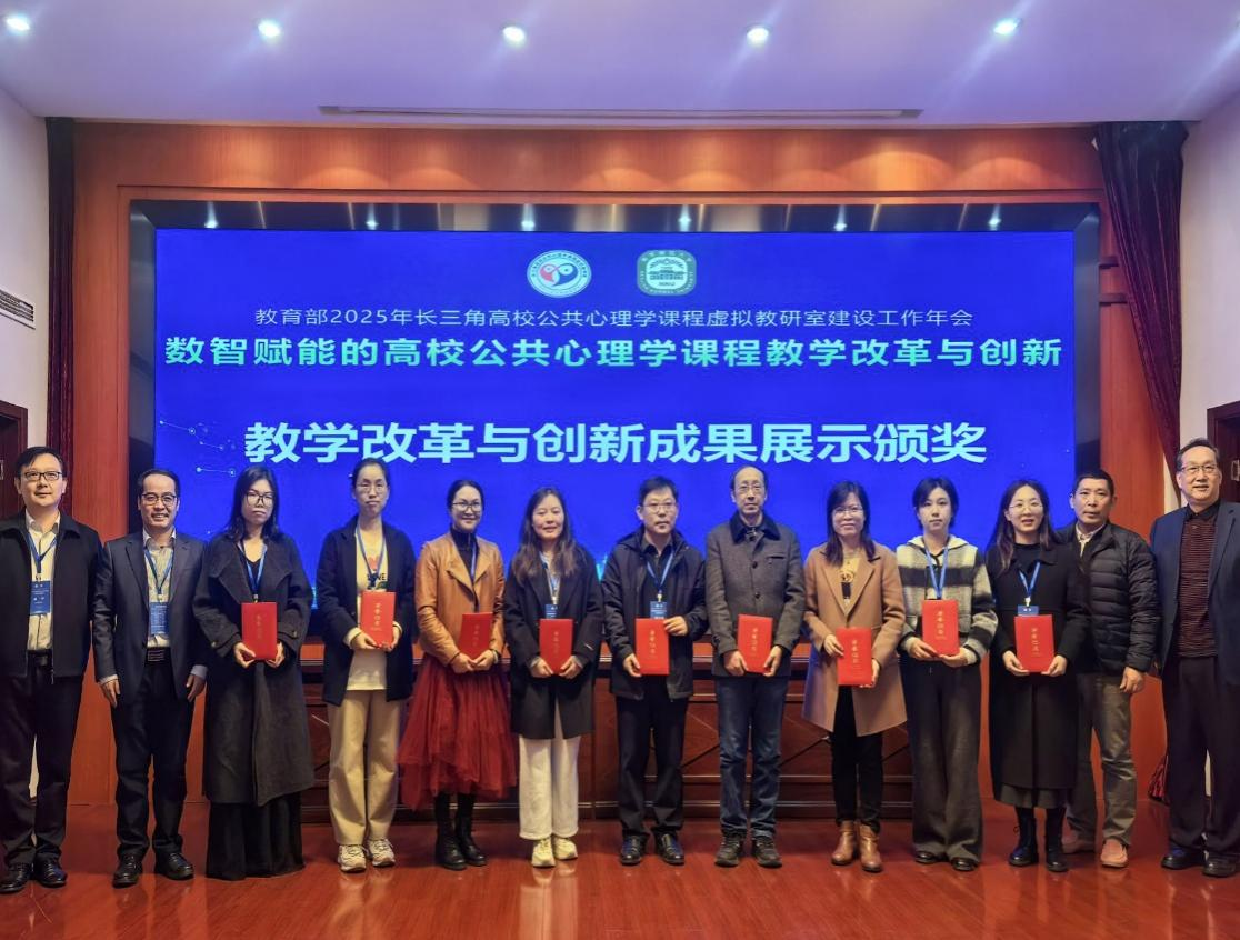 11月22日至23日,教育部2025年长三角高校公共心理学课程虚拟教研室建设工作年会在江苏南京召开。此次会议由教育部高等学校心理学类专业教学指导委员会指导举办,汇聚了长三角地区高校公共心理学课程虚拟教研室成员单位师生及全国相关学科课程的同仁。我校人文与管理学院心理学团队参加会议。