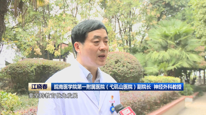 党的二十大报告指出, 坚持为党育人、为国育才,全面提高人才自主培养质量。在皖南医学院第一附属医院,副院长、神经外科教授江晓春正带领研究生开展一系列神经系统及脑血管疾病的基础和转化研究。目前,皖南医学院和芜湖市正在共建脑科学研究院,打造国家神经系统疾病区域医疗中心,为医疗卫生服务以及人才自主培养提供重点研发创新平台和优质共享资源。