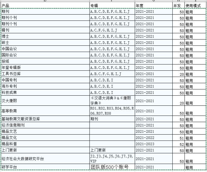为了更好地服务教学科研和提供优质的信息资源,满足我校师生的需求, 图书馆与CNKI签订试用协议,对我校开通CNKI中国知识资源总库为期两个月的全库试用,包括中国知网所有的十大专辑的期刊、博士、硕士、会议、报纸、法律、工具书等全库内容,详见下表:
