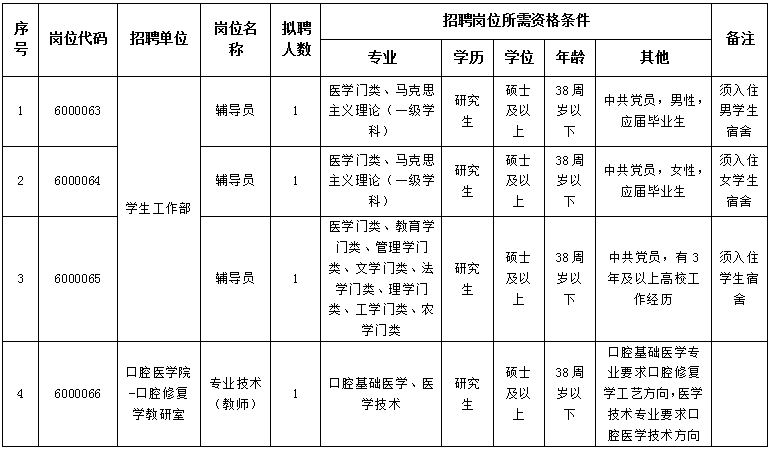 皖南医科大学2026年度公开招聘工作人员4人,具体岗位信息如下: